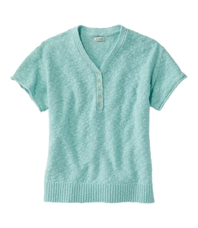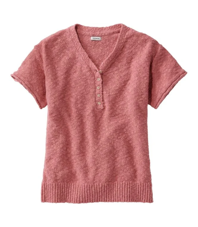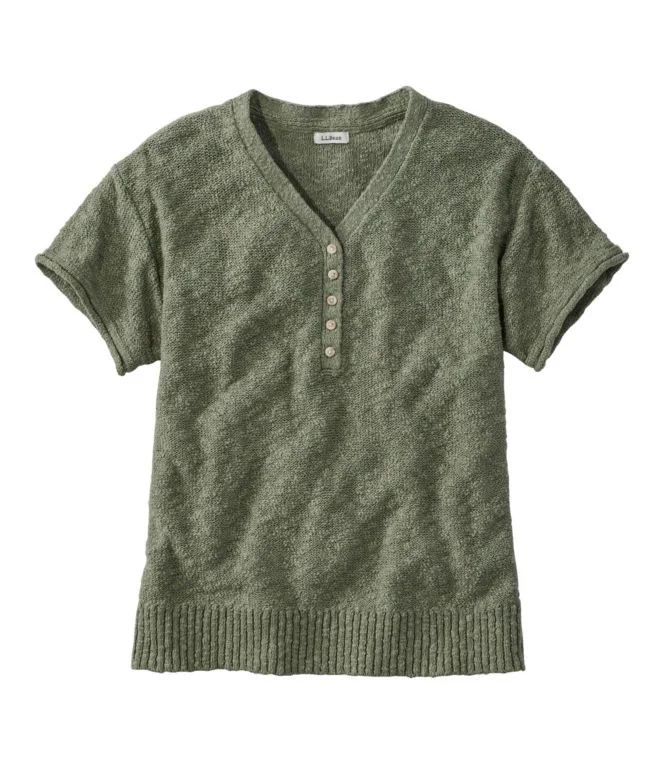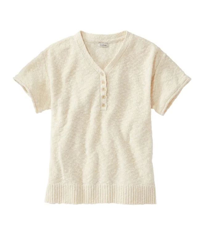 Women”s Midweight Cotton Slub Sweater, Henley Short-Sleeve