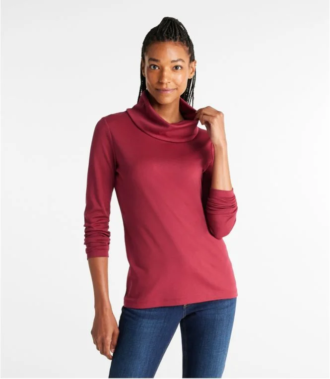 Women”s Pima Cotton Tee, Long-Sleeve Cowlneck